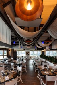 Drifthouse offers superb views of the Atlantic Ocean and sunset views over the Shrewsbury River. The dining rooms are elegantly decorated and feature stunning artwork. The smaller dining room, often used for cocktails and private parties, features a warming fireplace with a stone mantel. Arrive early…